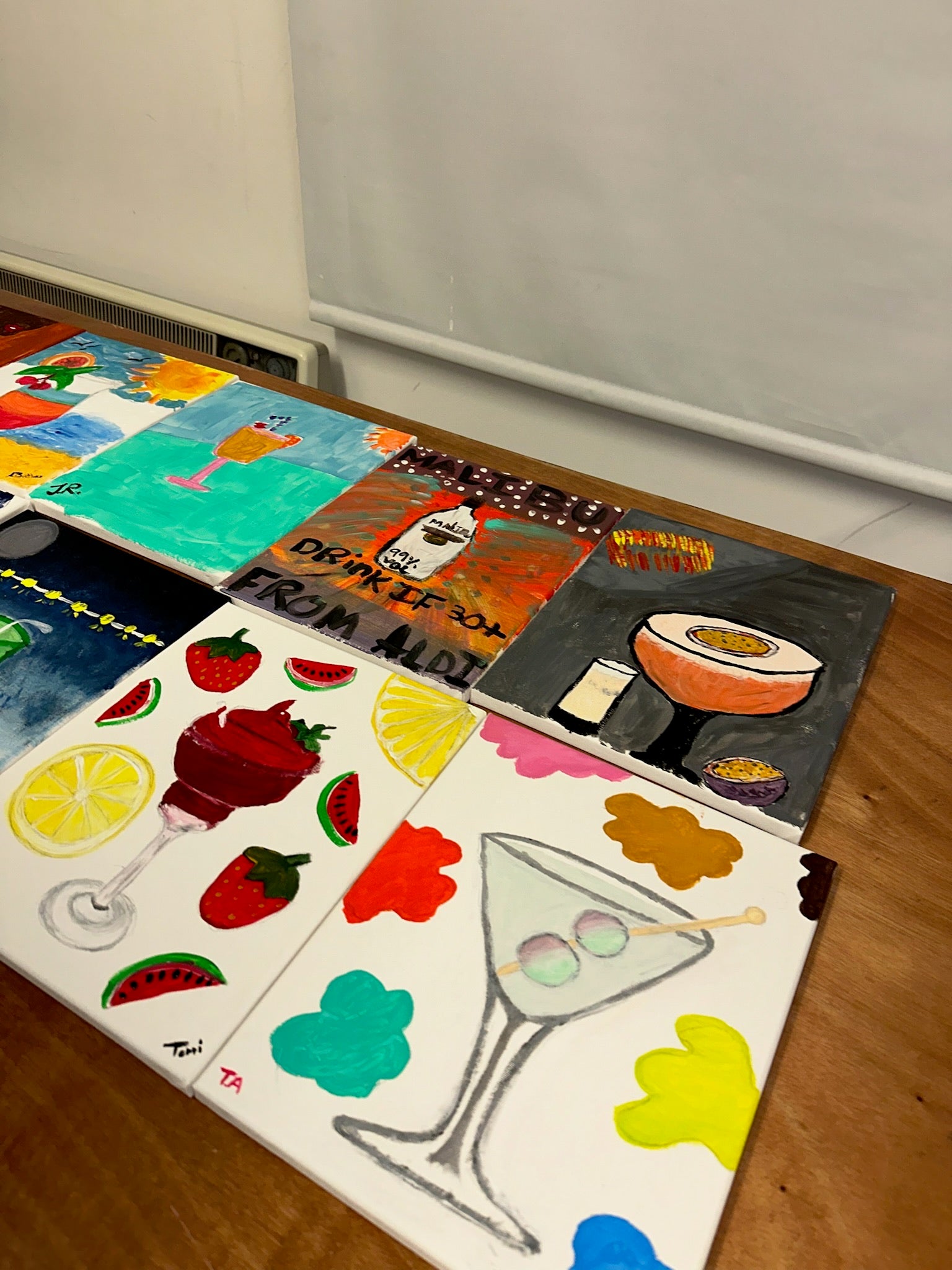 Our Corporate Sip & Paint experience offers a creative and relaxed atmosphere for your team to unwind and bond. With an easy setup, participants can enjoy sipping their favourite cocktails while guided through a fun painting session. Perfect for office socials, it’s an engaging and stress-free way to bring out your team’s creativity while having a great time together.